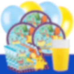 Dit kant en klare Pokémon feestpakket bestaat uit Pokémon borden (23 cm), papieren bekers (270 ml), en Pokémon servetten (33 x 33 cm) voor 8, 16 of 24 personen. Daarnaast bevat het pakket 10 stuks lichtblauwe ballonnen en 10 stuks gele ballonnen en een donkerblauw plastic tafelkleed (137 x 274 cm). Het pakket voor 24 gasten bevat 2 stuks tafelkleden.