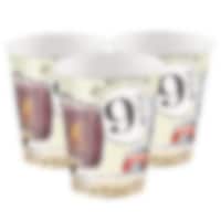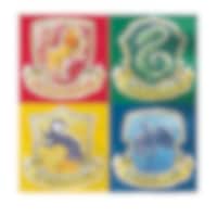 8 bordjes met kleurrijke afbeeldingen van de logo's van Griffoendor, Huffelpuf, Ravenklauw en Zwadderich uit het Harry Potter-universum. Perfect om toe te voegen aan de tafelaccessoires voor een magisch Harry Potter kinderfeestje.