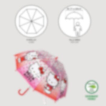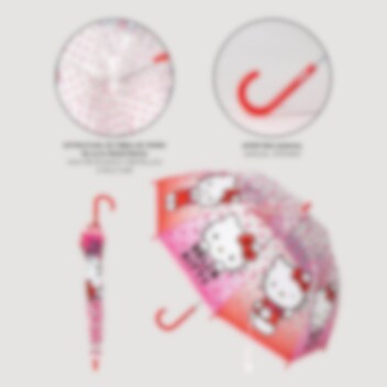 Maak regenachtige dagen extra vrolijk met deze schattige kinderparaplu met Hello Kitty! De paraplu heeft een diameter van ca. 71 cm en is gemaakt van stevig PoE en glasvezel. Hij heeft 8 baleinen en wordt handmatig geopend. Het kleurrijke design met Hello Kitty maakt deze paraplu tot een favoriet bij alle jonge fans van het geliefde karakter.