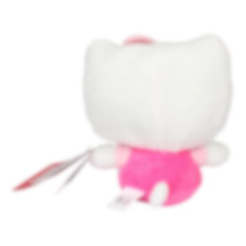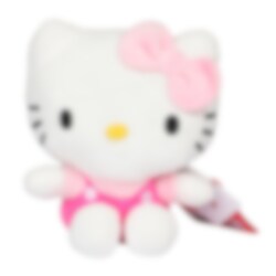 De charmante en geliefde Hello Kitty staat klaar om vreugde en warmte te brengen! Met haar klassieke roze jurkje, zachte pluche en schattige strik is ze de perfecte metgezel om mee te spelen en te knuffelen.
