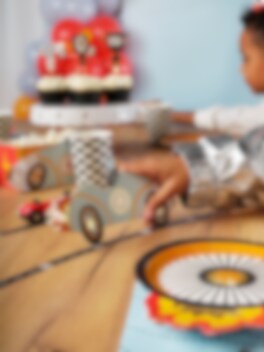 6 stuks ontzettend coole bordjes die een autoband voor een racewagen voorstellen met een vuurvlam in 3D. Met deze kun je een levendig kinderfeestje opzetten en stemmen met andere mooie accessoires van het thema. De borden zijn gemaakt van papier en zijn 26,5 x 18 cm groot.