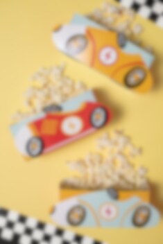 Maak het kinderfeestje nog spannender met deze stoere snackbakjes in raceauto-thema. Elke verpakking bevat drie bakjes in drie verschillende modellen, perfect om snacks, snoep of kleine verrassingen aan je gasten te serveren. De afmetingen van de bakjes zijn 7,5 x 17 x 7,5 cm. Gemaakt van papier.