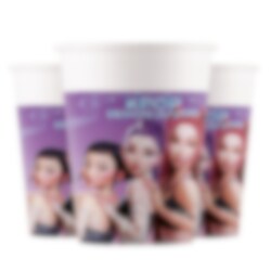8 kleurrijke papieren bekers met K-pop-geïnspireerde afbeeldingen, perfect voor een trendy kinderfeestje of themafeest met muziek en dans in de hoofdrol. De bekers zijn geschikt voor ranja of andere drankjes en zorgen voor een moderne en stijlvolle tafeldekking.