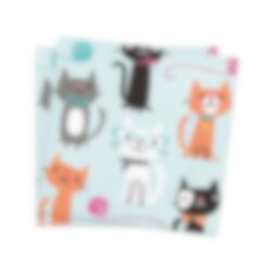 16 kleine mintgroene servetten met schattige afbeeldingen van katten. Een perfecte accessoire voor een kinderfeestje met een kattenthema. De servetten zijn tweelaags en hebben een uitgevouwen formaat van 25 x 25 cm.