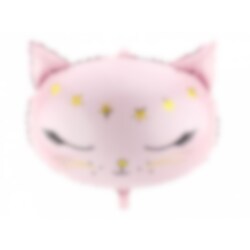 Folieballon van een lichtroze kat met goudkleurige details. Echt een mooi decoratie voor het katten kinderfeestje. De ballon wordt ongeveer 50 x 40 cm opgeblazen en opgeblazen met lucht of helium.