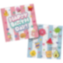 20 servetten met een schattige Kawaii-afbeelding die de tafel extra kleurrijk en speels maken voor het kinderfeestje. De servetten zijn versierd met schattige afbeeldingen van fruit, snacks en lekkernijen samen met de tekst Happy Birthday, wat perfect past bij een kinderfeestje met een Kawaii-thema.