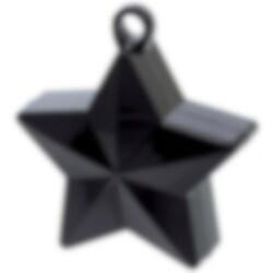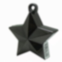 Zwart stervormig ballongewicht in metaalkleur om je ballonnen opgeblazen met helium op de grond te houden. Het ballongewicht weegt ongeveer 170 gram en heeft een capaciteit van ongeveer 30 latex ballonnen of 8-10 stuks cijfer- of letter ballonnen.