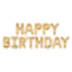 Decoratieve ballonslinger die Happy Birthday vormt met 13 letters in goud. De letters worden op een transparant draad gestoken en aan de wand of aan het plafond gehangen. De ballonnen zijn gevuld met normale lucht en de gemakkelijkste manier is om een ballonpomp te gebruiken. De letterballonnen zijn ongeveer 35 cm hoog. Perfecte decoratie voor elke verjaardag.