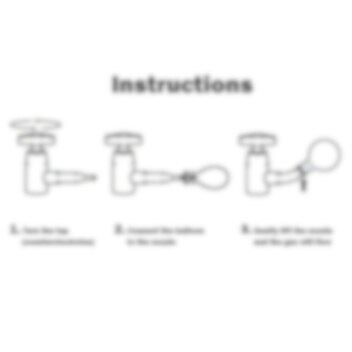 1. Schroef het zwarte mondstuk voorzichtig op de opening van de heliumtank, zodat het helium niet het risico loopt naar buiten te lekken in stap 2.