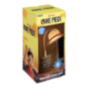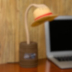 Deze One Piece-bureaulamp is ontworpen als Luffy’s iconische strohoed, verlicht en omhooggehouden door een buigbare arm die in een houten vat staat, rechtstreeks uit de piratenwereld. De flexibele arm maakt het eenvoudig om het licht precies te richten waar je het wilt hebben.