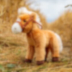 Schattige pluche knuffel in de vorm van een lichtbruin paard dat een perfect speelgoed wordt voor alle paardenliefhebbers kinderen. Het paard is levensecht en perfect als cadeau.