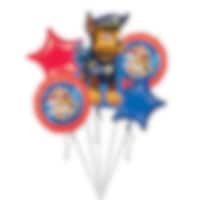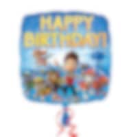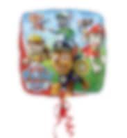 Chique folieballon in rood en wit met afbeeldingen van de schattige hondjes uit Paw Patrol. Een vrolijke decoratie voor een Paw Patrol-kinderfeestje.
