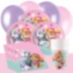 Vier een vrolijk kinderfeest met Skye en Everest van Paw Patrol! Met dit schattige feestpakket heb je alles wat je nodig hebt voor een kleurrijk en gezellig verjaardagsfeest. De bordjes, papieren bekers en servetten tonen de populaire heldinnen, terwijl de lichtroze en lichtpaarse ballonnen samen met het roze plastic tafelkleed zorgen voor een feestelijke sfeer.