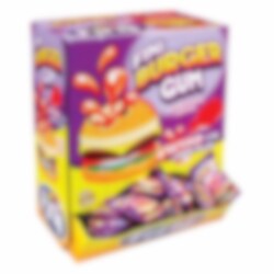 Grappige kauwgom die een hamburger met zure inhoud voorstelt. Een leuk ding om op elk kinderfeestje in het uitdeelzakje te hebben. Een verpakking bevat 5 gram.