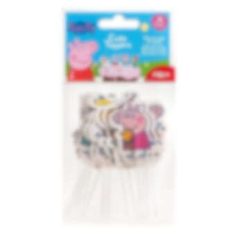 16 schattige caketoppers met afbeeldingen van Peppa Pig en haar lieve vrienden. Perfect om de taart en andere gebakjes te versieren voor een Peppa Pig-thema kinderfeestje. Ze zijn ongeveer 11 cm hoog en geven een speelse touch.