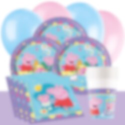 Met een kant-en-klaar feestpakket organiseer je eenvoudig en snel een onvergetelijk kinderfeestje vol blije kinderen, leuke details en feestelijke gezelligheid. Maak het feest compleet met uitdeelzakjes, feestboxen, snoep, kleine cadeautjes en andere Peppa Pig-decoraties.