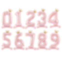 Geweldige vrijstaande folieballonnen om mee te versieren voor je verjaardagsfeestje. De ballonnen zijn lichtroze met een mooi goudfolie kroontje erop. Combineer zoals jij wilt, want de ballonnen zijn verkrijgbaar in de cijfers 0-9.