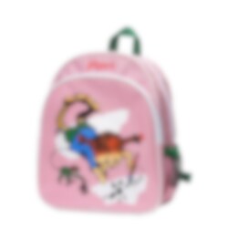 Voorzien van een handvat bovenaan en verstelbare schouderbanden zodat hij goed op maat kan worden afgesteld. Een kleurrijke en vrolijke rugzak met afbeeldingen uit de wereld van Pippi Langkous.