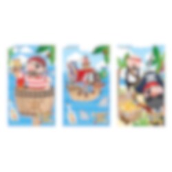 Klein notitieboekje met motieven van piraten. Een leuk accessoire voor in het uitdeelzakje. Het notitieboekje is ongeveer 10 x 6 cm groot en wordt ongesorteerd en in per stuk verkocht.