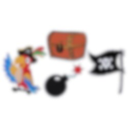 Stoere houten confetti met motieven van een schatkist, piratenvlag en andere stijlvolle piratendetails. Iets luxere confetti die hergebruikt kan worden. De confetti zijn ongeveer 5 x 6 en 2,5 x 5,5 cm groot, zitten in een zakje met in totaal 10 stuks.