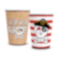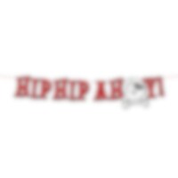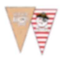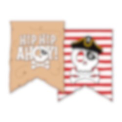Versier het piratenkinderfeestje met deze feestelijke slinger in een klassiek piratenthema. De decoratieve vlaggetjes zijn voorzien van de tekst "Hip Hip Ahoy!", een doodshoofd, een piratenhoed en rode strepen. Dit speelse ontwerp zorgt direct voor de juiste sfeer op het feest.