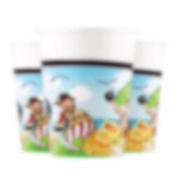 8 papieren bekers met heerlijke piratenmotieven die goed passen bij de tafelaankleding voor het kinderfeestje met een leuk piratenthema.