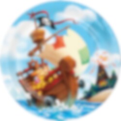 8 papieren bordjes in mooie kleuren en met een cool piratenmotief. Perfecte bordjes om mee te nemen naar het kinderfeestje met een piratenthema. De bordjes hebben een diameter van 22 cm.