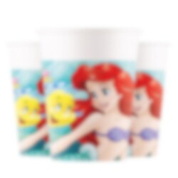 8 papieren bekertjes met een leuk motief van prinses Ariel. De bekertjes zijn ongeveer 10 cm hoog en hebben een inhoud van ongeveer 200 ml.