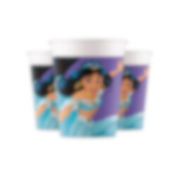 8 schattige papieren bekers met een mooi motief van prinses Jasmine uit Aladdin. De bekers zijn ongeveer 10 cm hoog en hebben een inhoud van ongeveer 200 ml.
