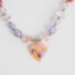 Mooie halsketting in roze en paars met kralen, strikjes en sterretjes – en een hartvormige hanger met bekende Disney-prinsessen. Een schattig en speels accessoire dat de outfit van elke jonge modeliefhebber compleet maakt. Perfect voor een feestje, verkleedpartij of een gewone dag met een beetje extra glans.