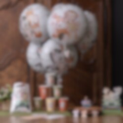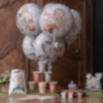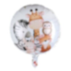 Ronde folieballon met motieven van schattige kleine safaridieren. Een leuke decoratie om mee te nemen naar het kinderfeestje.
