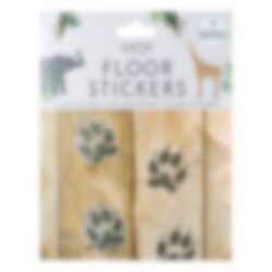 6 stickers met voetafdrukken van een grote tijger in bruine kleur. Plak deze op de grond om je vrienden naar je junglefeest te begeleiden. Of waarom niet aan de muur plakken voor een cool effect.