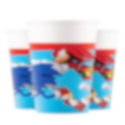 8 papieren bekers met een leuke afbeelding van Sonic the Hedgehog. De bekers zijn ca. 10 cm hoog en hebben een inhoud van ca. 200 ml. Perfect voor ranja of frisdrank tijdens een Sonic-kinderfeestje!