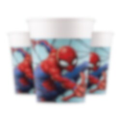 8 mooie papieren bekers met motieven van Spiderman voor een blauwe achtergrond. Een cool tafelaccessoire voor het kinderfeestje. De bekers zijn ongeveer 10 cm hoog en hebben een inhoud van ongeveer 266 ml.