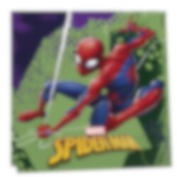 20 kleurrijke servetten met Spiderman-motieven. De servetten hebben 2 lagen en zijn uitgevouwen 33 x 33 cm.