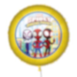 Maak het feestje extra leuk met deze ronde Spidey-folieballon met Spidey, Spider-Gwen en Miles Morales! Het vrolijke ontwerp is een perfecte decoratie die meteen voor een feestelijke sfeer zorgt.