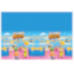 Tafelkleed van plastic met kleurrijke afbeeldingen van Stumble Guys. Het tafelkleed is 120 x 180 cm groot.