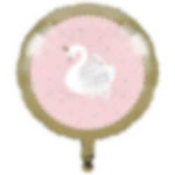 Folieballon in de kleuren roze, goud en wit en met het motief van een leuke zwaan. Een indrukwekkende decoratie voor het kinderfeestje met Stylish Swan als thema. De ballon wordt ongeveer 45 cm in doorsnee wanneer hij is opgeblazen en is het gemakkelijkst op te blazen met helium.