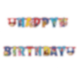 Kleurrijke slinger met de tekst 'Happy Birthday' en afbeeldingen van de karakters uit de Super Mario-videospellen. Leuk om als decoratie te gebruiken voor het kinderfeestje. De slinger is gemaakt van papier en is ongeveer 190 cm lang.