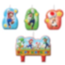 Vier in stijl met Super Mario en zijn vrienden! Deze set van vier kleurrijke taartkaarsjes, met Mario, Luigi, Toad en Yoshi, is de perfecte aanvulling voor een verjaardagstaart in Super Mario-thema.