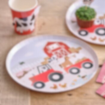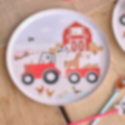 8 papieren bordjes met leuke en leuke motieven van verschillende dieren op de boerderij. De bordjes hebben een diameter van 24 cm.