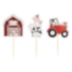 6 caketoppers met grappige boerderijmotieven die een mooie decoratie zullen zijn op uw gebak voor het kinderfeestje. Hoogte 10cm.