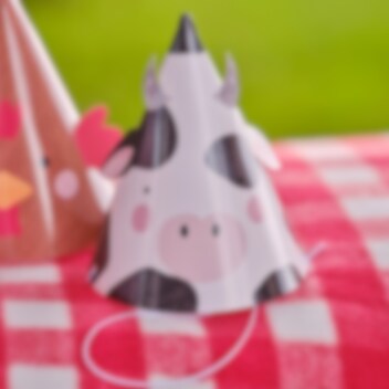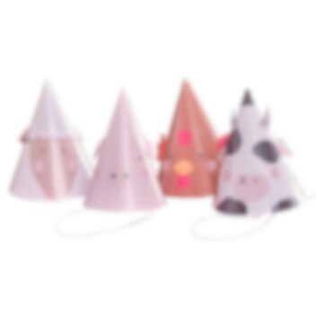 8 stijlvolle feesthoedjes met leuke motieven van schapen, varkens, kippen en koeien die een leuke accessoire zullen zijn voor het kinderfeestje met een boerderij thema. De hoedjes zijn 19 cm hoog en worden op hun plaats gehouden met een elastische band.