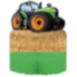 Stoere tafeldecoratie in honeycomb met een mooi tractormotief. Een passende decoratie voor je tractor kinderfeestje feest waar een tractor netjes in een veld geparkeerd staat. De decoratie is ongeveer 23 x 30 cm groot.