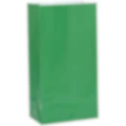 Set van 12 donkergroene papieren uitdeelzakjes, ideaal om te vullen met snoepjes, kleine cadeautjes of traktaties. Perfect voor kinderfeestjes of themafeesten. De zakjes zijn ca. 25 × 13 cm groot.