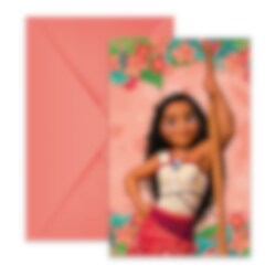 6 kleurrijke uitnodigingen met een prachtig ontwerp van Vaiana uit Disney’s populaire film. Perfect om vrienden uit te nodigen voor een spannend en avontuurlijk verjaardagsfeest!
