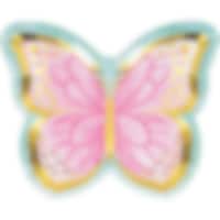 8 papieren bordjes in glinsterende pastelkleuren met afbeeldingen van vlinders en bloemen. De bordjes hebben een diameter van 23 cm.