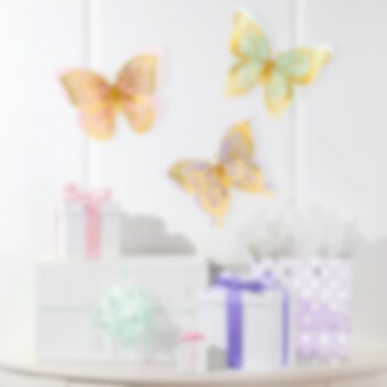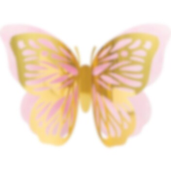 3 echt prachtige wanddecoratie in de vorm van vlinders in pastelkleuren met goudfolie. De vlinders zijn gemaakt van karton en hebben een afmeting van 29 x 24 cm.