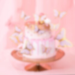 10 mooie taartdecoraties in de vorm van paarse vlinders met elegante goudfolie details. De set bevat ook 10 flexibele dunne stokjes en 10 lijmprikkertjes, zodat je de vlinders gemakkelijk op je taart kunt bevestigen en rangschikken. De grootte van de vlinders varieert van 5 tot 9 cm.