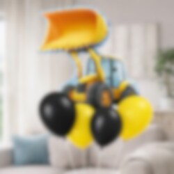 Dit ballonnenboeket met bulldozer is de perfecte decoratie voor kinderen die houden van bouwmachines en grote werkvoertuigen.